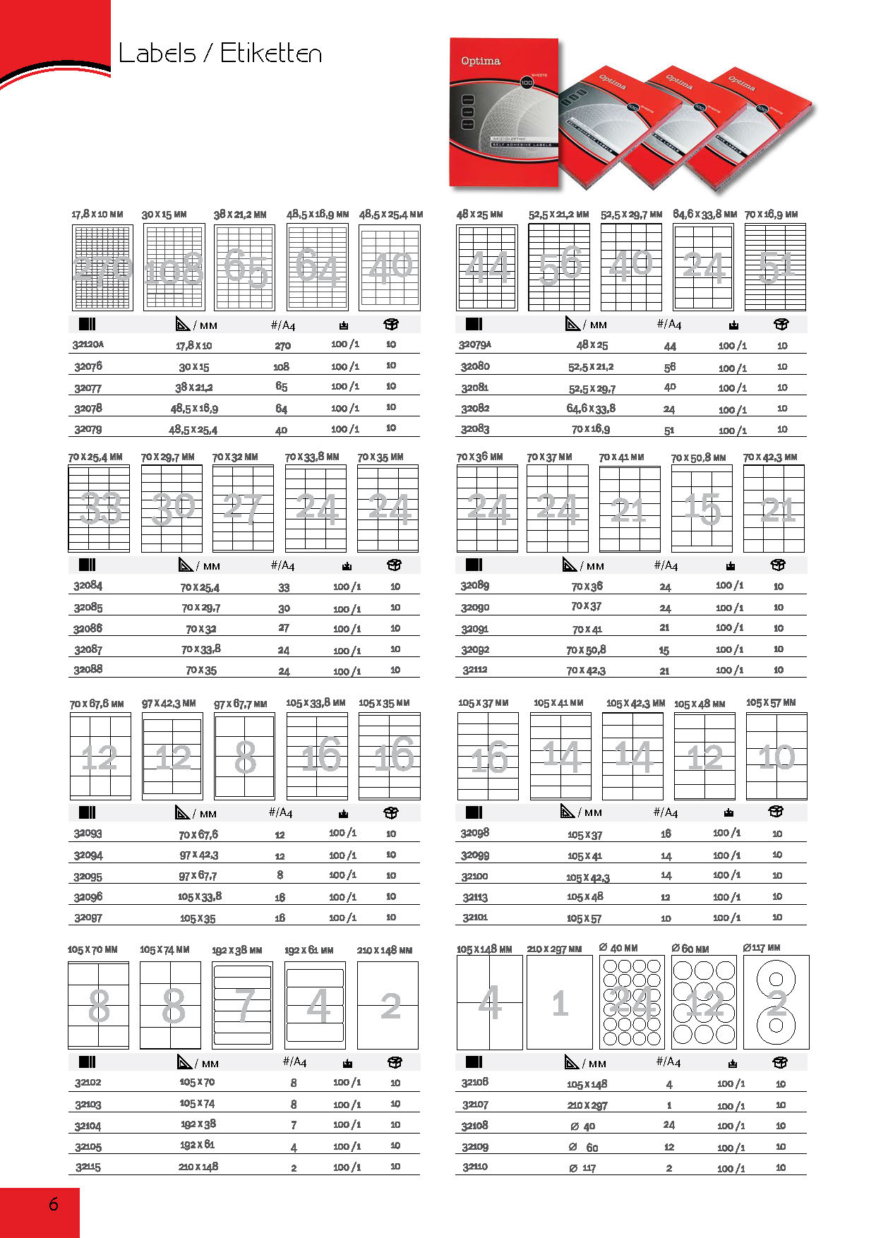 Vrhunski etiketni materijal, za štampu na laserskim i ink jet štampačima, permanentno lepljive, 52,50 x 33,80 mm, 40 etiketa na listu formata A4, 100 listova u kutiji, cena po kutiji.