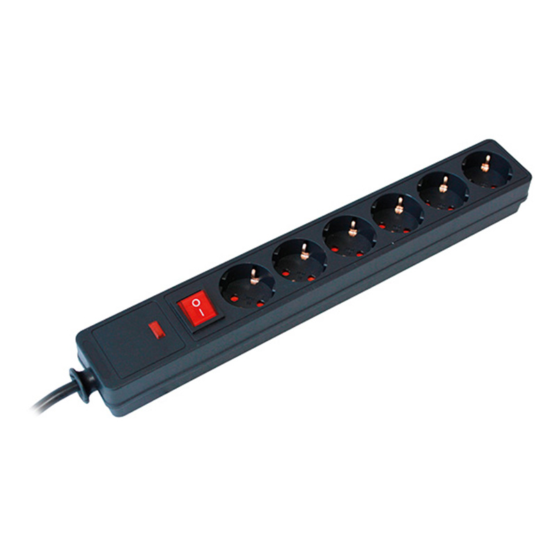 Za povezivanje do šest elektronska ureðaja. Integrisane šupljine za šrafljenje na zid. Dvopolni osvetljeni prekidaè. Utiènice pod 45°. Sa praktiènim držaèem kabla. Sa zaštitom za decu. Napravljeno od plastike otporne na viskou temperaturu. Crno kućište sa crnim utičnicama. Garancija: 10 godina