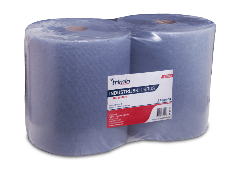 Industrijski ubrus u rolni, plavi, 2sl, 280m, Visina 33cm, prečnik 30cm , hilzna 64mm, pakovanje 2/1