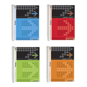 80 listova; 60 g/m2; s rupama i perforacijom; boje korica: crvena, narandžasta, plava i žuta; s designom