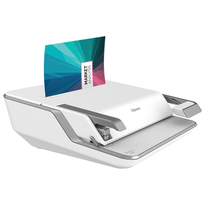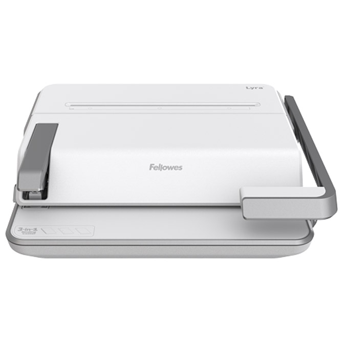 jedinstveni 3u1 centar za koričenje: koričenje, heftanje i bušenje dokumenata; koričenje: za format A4; buši do 20 listova 80 gramskog papira; maksimalna veličina spirale do 38 mm; kapacitet: 300 listova; ručna; povezuje samo u plastičnu spiralu; podesivi graničnik za precizno poravnanje listova, fioku za otpad, odvojene ručke za bušenje i povezivanje; metalna konstrukcija i metalni mehanizam za duži vek trajanja; heftanje: do 30 listova, koristi klamerice 24/6 i 26/6; sadrži početni set od 1000 klamerica; bušenje: buši do 30 listova; ima selektor za 2 i 4 rupe; dimenzija: 440x395x155 mm; težina: 6,9 kg; garancija na mašinu 2 godine