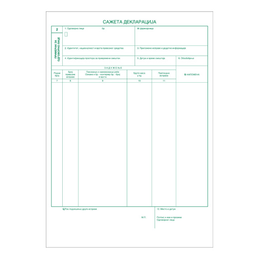 OBRAZAC SAŽETA DEKLARACIJA BLOK