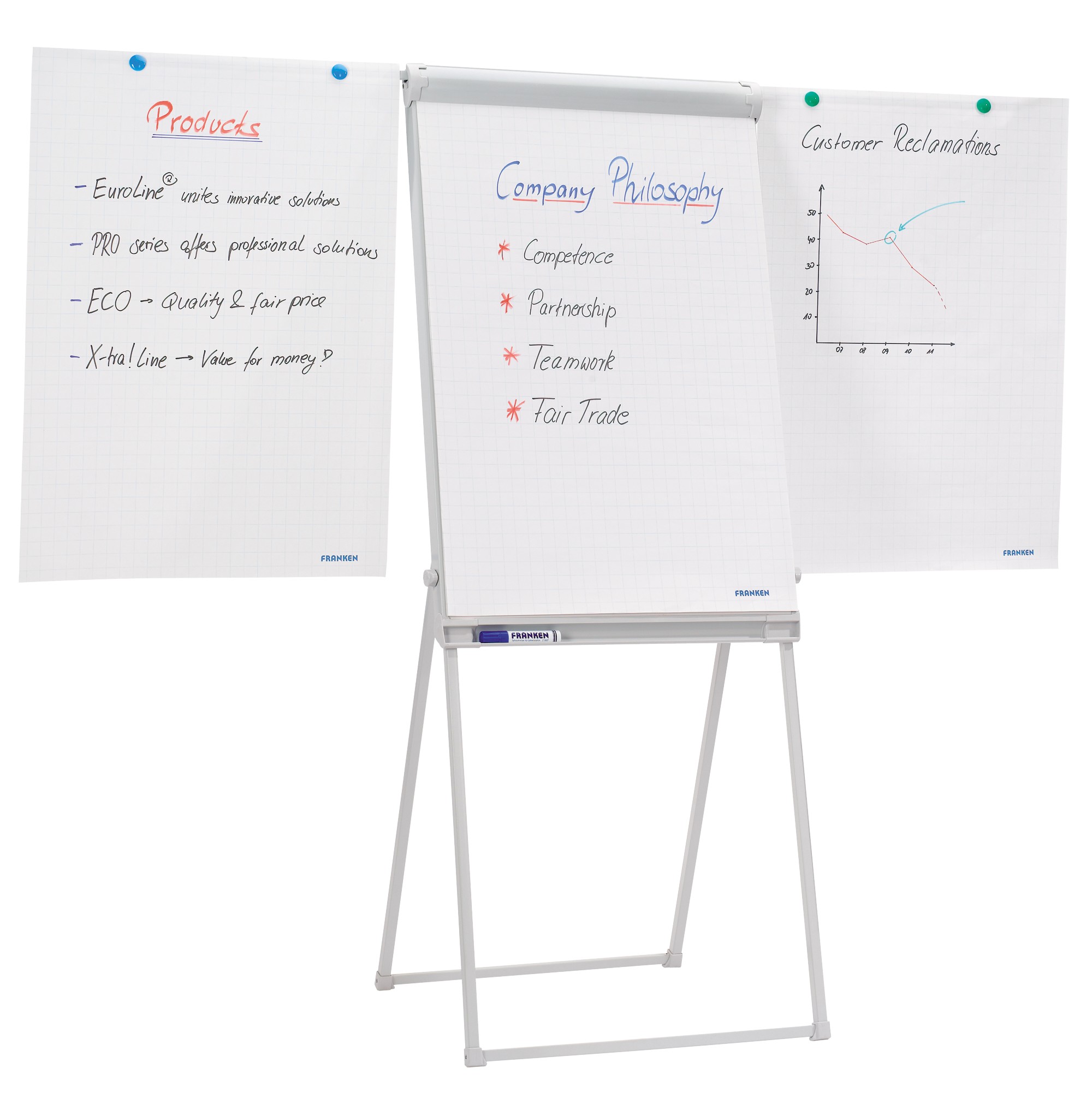 Lukksuzno opremljena flipchart tabla sa ramenima za prikazivanje ispisanih papira. Klizno podesavanje visine od samo 110cm sve do 180cm. Mogu je koristiti I sasvim mala deca kao I osobe sa invaliditetom