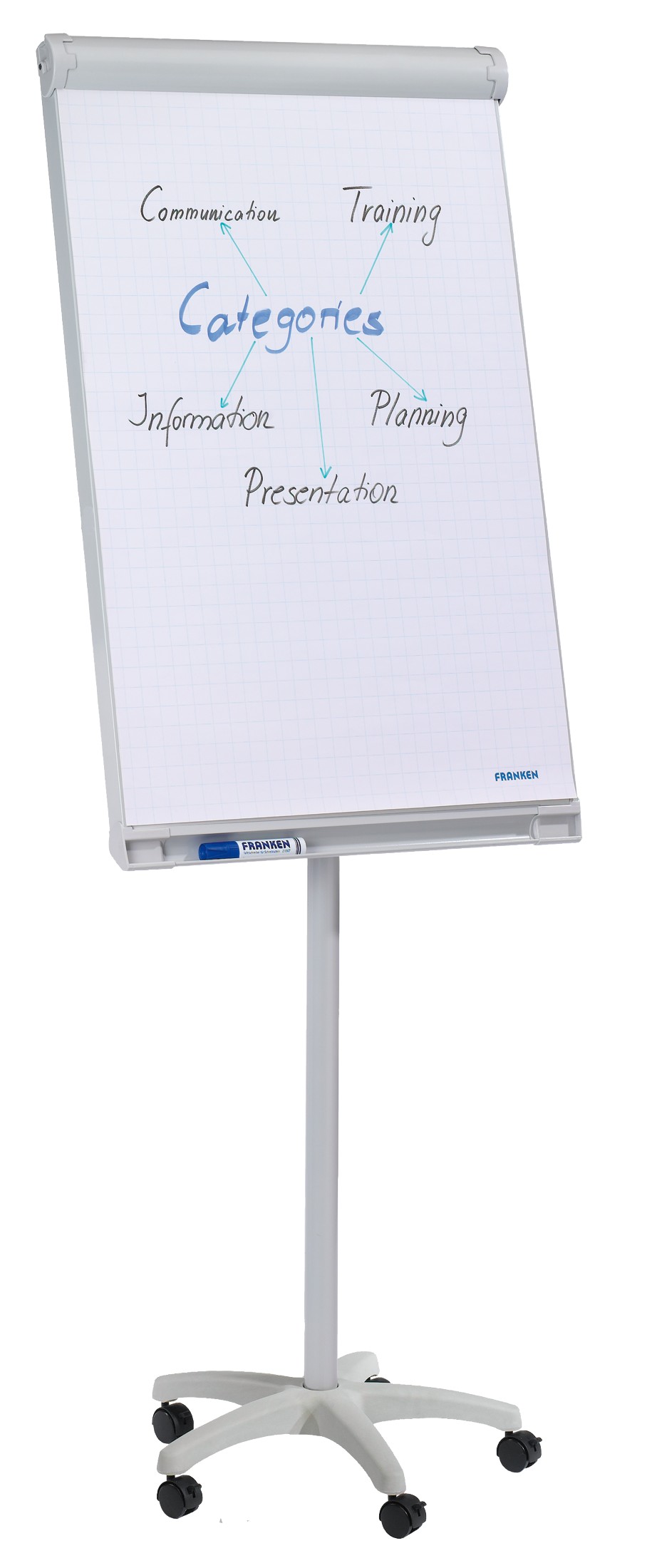 Flipchart tabla magnetne povrsine dimenzija 104,5x68cm, podesavanje visine do 190cm,stalak sa 5 tockica sa kocnicima