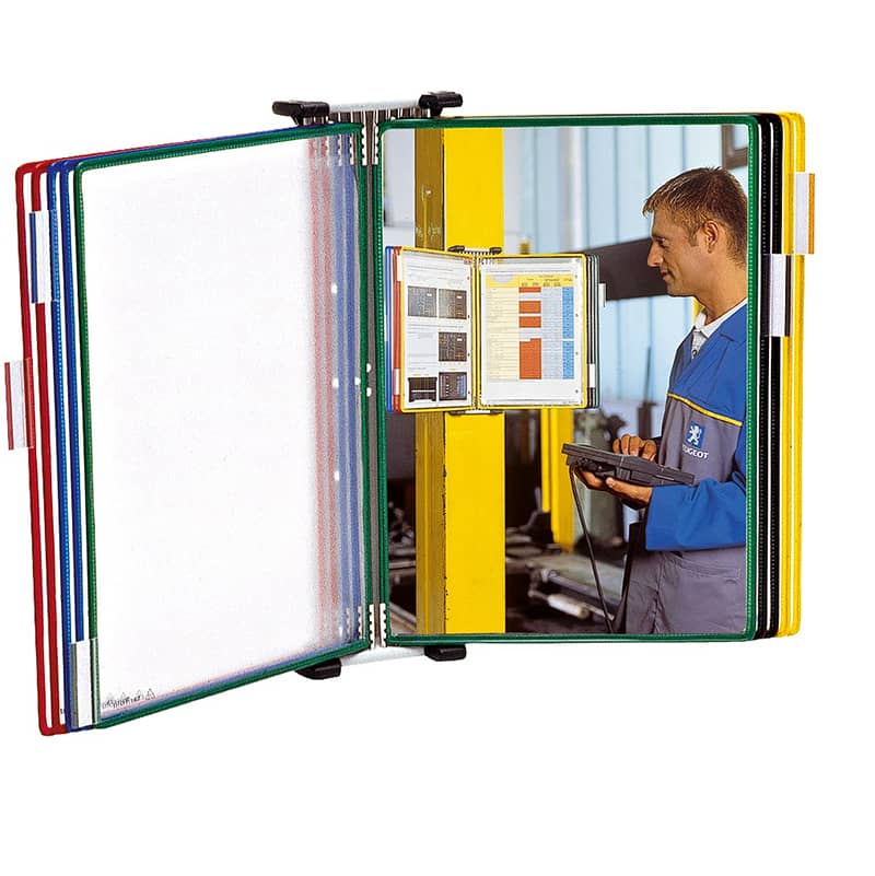 TARIFOLD Stalak Zidni Čelični sa 10 Ramova u Različitim Bojama A4 formata (A4 uspravno) sa Zatvaračima je praktično i efikasno rešenje za organizaciju dokumenata u vašem radnom prostoru. Ovaj zidni nosač je napravljen od čvrstog čelika, pružajući dugotrajnost i stabilnost.