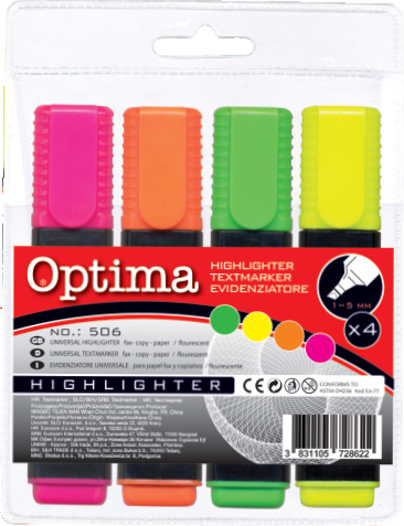 Tekst marker za oznacavanje teksta, idealan za sve vrste papira, mastilo je na vodenoj bazi, debljina linije 1-4mm, blister pakovanje: 12/1; 4/1